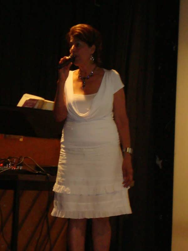 אביבה מדר – הזמרת האורחת שלנו – הובילה במספר שירים יפים להנאת כולנו והחמיאה לשגיא על הליווי הנפלא בפסנתר.